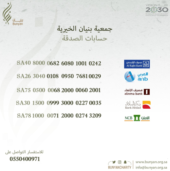 يمكنكم التبرع عبر الحسابات البنكية المعتمدة للجمعية