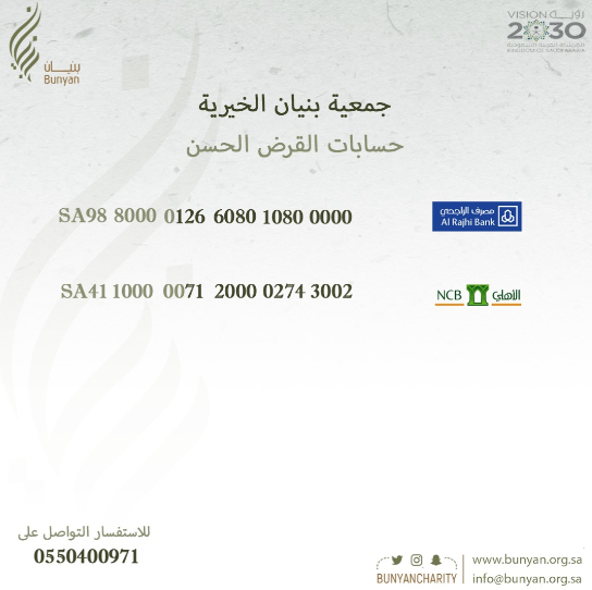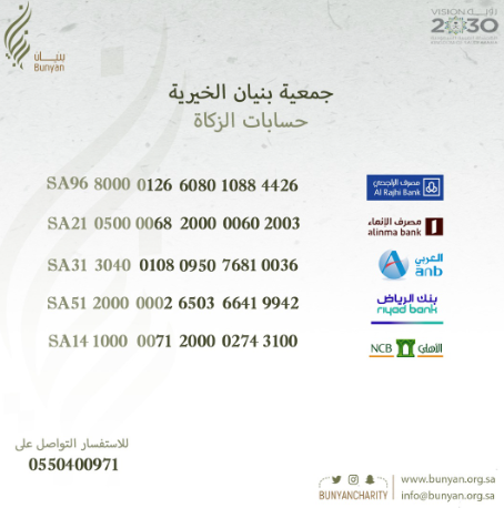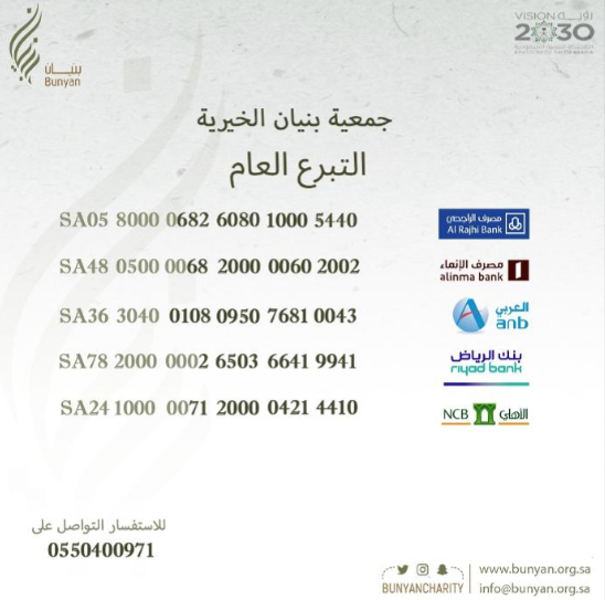 يمكنكم التبرع عبر الحسابات البنكية المعتمدة للجمعية